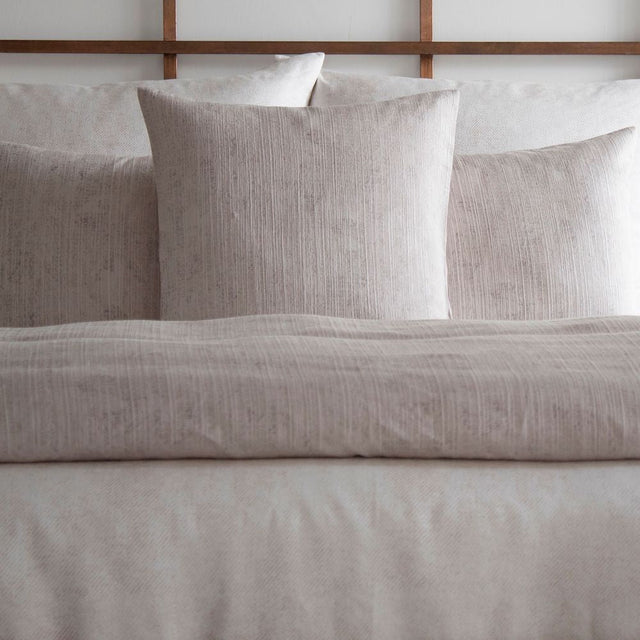 Aspen Pearl Bedding by Ann Gish. Duvet cover and shams featuring a textural jacquard matte design inspired by the bark of the aspen tree. This bedding is woven with soft and neutral colored yarns that will easily work with contemporary or traditional decor. This collection of bed linens is elegant, luxurious and versatile.