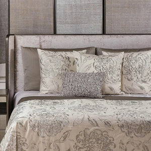 This Glory Silver Duvet Cover from Ann Gish is the epitome of grace and opulence. The luxurious duvet cover features elegant silver flowers embroidered on a cream background. This bedding is designed with beautiful details that will make a statement in any home with traditional or transitional decor. Coordinating throw and decorative pillow is also available.