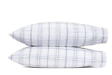 Matouk Schumacher August Plaid Navy Blue Bedding. Fall in Love with Duvet Covers, Bed Sheets, Pillowcases and Pillow Shams in a Lightly Printed Plaid on Crisp White Cotton Percale. Refined and sophisticated classic check with a lightweight feel and appearance. Enjoy this fresh and beautiful update to Plaid Bedding. Fine Linens Bedding in White with Just Enough Color from the Matouk and Schumacher Collaboration. So soft and comfy!.