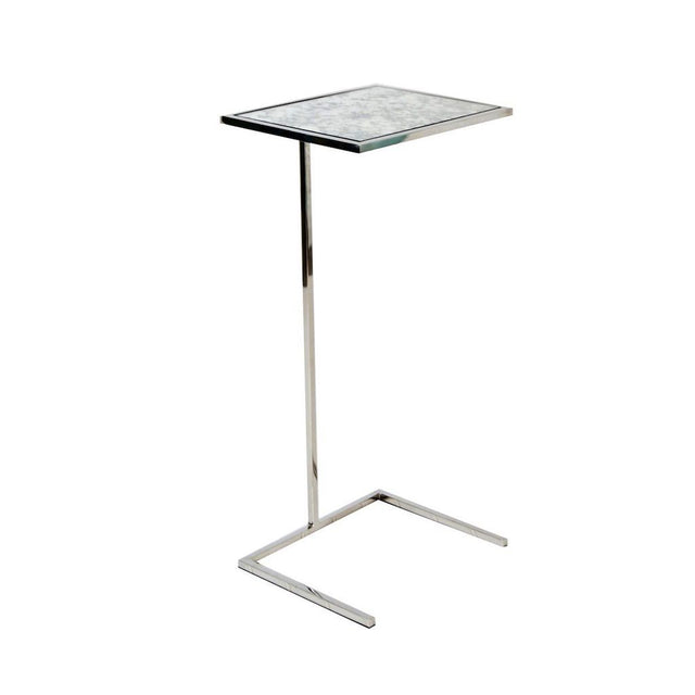 This Nickel & Antique Mirror Cigar Table by Worlds Away is simple, modern and versatile. The petite drink table will easily complement any interior. It has a simple frame and is designed with a unique nickel base that makes it easy to slide beneath a sofa or side chair. The small table is topped with a rectangular antique mirror top. Perfect for placing your drink or laptop as you lounge in style.