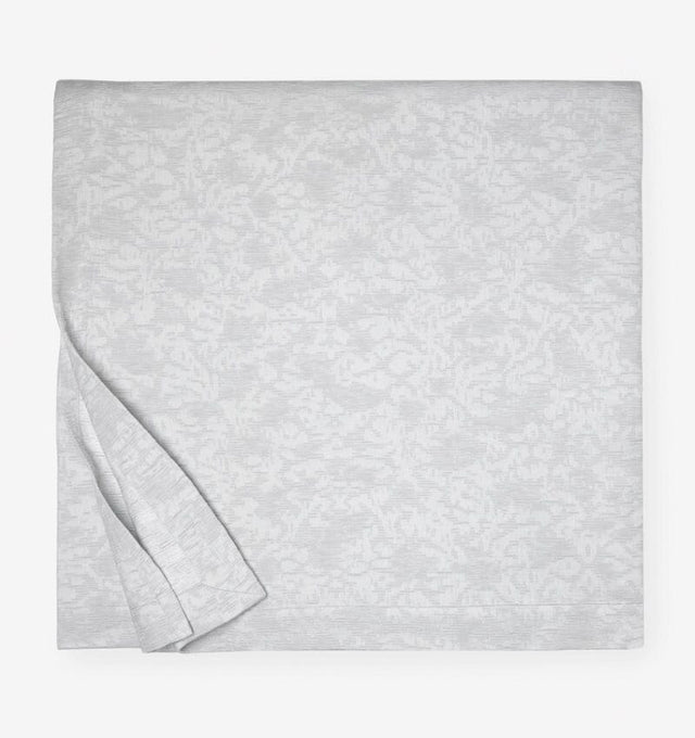 Aldino Tin Coverlets and Pillow Shams by Sferra Fine Linens. Sferra quality and a soft new silvery tin color. Bedding that's easy to use with any white, silver or other pure neutral. Aldino’s texture is created by overlaying an abstract sateen weave pattern over a linear background. The say this is constructed, with its dappled textural appearance, creates a dreamy surface. When you see it in the light, you'll think of glistening waters flowing through rocky, mountain creeks. The bed cover comes in queen and king blanket cover size and shams are sold separately.