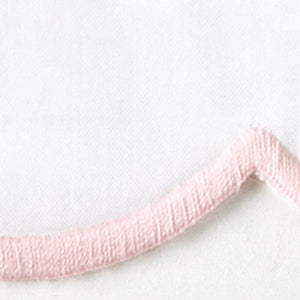 Dakota Scallop Pink Bedding by Matouk. Crisp white Dakota Scallop Duvet covers and Bed sheets have an updated classic small scallop on the edges. Lovely and soft light pink embroidery is reimagined on crisp 520 thread count Ceylon sheeting. Dakota's petite scallop adds a soft, colorful edge that creates a bedroom filled with effortless style & charm. Timeless, durable and wonderfully soft Bedding in Duvet Covers, Sheets, Pillowcases and Pillow Shams. This Matouk Linens Style is an allover white with just a hint of freshly toned color on the scalloped edge.