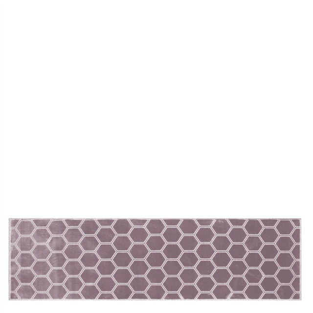Manipur Amethyst Floor Rug by Designers Guild makes a stylish and contemporary statement in any interior. The floor runner features a chic hexagon pattern and comes in a lovely and sophisticated colorway with a unique woven wool ground. It is woven on a specialist jacquard velvet loom in Belgium and has a low dense pile with a subtle sheen that gives it a practical finish and minimizes marking.