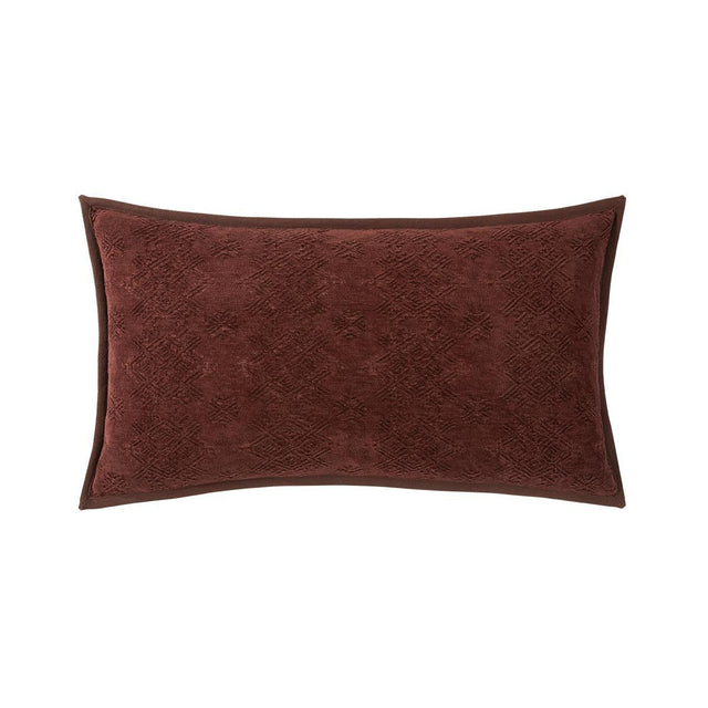This Syracuse Acajou Lumbar Pillow by Iosis comes in a beautiful and rich mahogany. The throw pillow is made from soft stone washed jacquard velour and features tone-on-tone geometric design. With its unique textured look and versatility, this accent pillow offers a relaxed yet elegant decorative touch.
