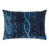 Cobalt Black Cable Knit Velvet Decorative Pillow by Kevin O'Brien Studio. This gorgeous throw pillow showcases a modern, unique and eye-catching take on the classic cable knit pattern. The pillow is impeccably hand-crafted from luxurious burnout silk velvet fabric and has iridescent effect that makes it extra special.