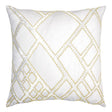 White and Yellow Net Velvet Appliqué Pillow by Kevin O'Brien Studio features a geometric design that plays with texture and subtle color. The decorative pillow has white velvet bars embroidered on a white background with soft yellow rustic blanket stitches. It is unique, modern and adds a lovely and classy accent to any space.