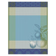 Arrière Pays Blue Hand Towels by Le Jacquard Français. These charming blue kitchen towels feature a design inspired by sunny markets of Provence. The cotton kitchen towels are woven with illustrations of fresh fruits paired with ornamental geometric patterns.