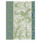 Pommes a Croquer Green Tea Towels by Le Jacquard Français. These jacquard woven tea towels feature tone-on-tone illustrations of fruit and flowers on a green color blocked background with. The vibrant color and timeless design make this collection unique and charming.