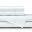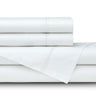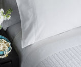 Bella White Sheet Set by Lili Alessandra. Luxurious and crisp white percale bedsheets and pillowcases with a double hemstitch and tone-on-tone satin embroidery. Sheets sets are available in King and Queen sizes.