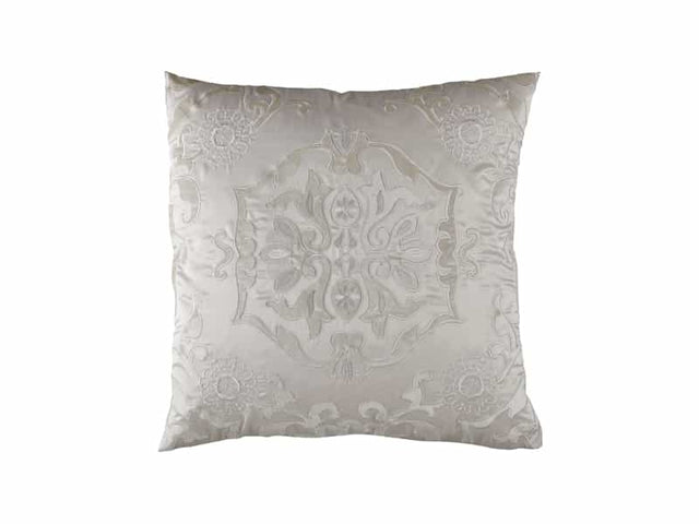 Morocco Ivory Pillow by Lili Alessandra is uniquely crafted, bold and sophisticated. The square pillow features a design that is perfect for the classic luxury bed. The ivory decorative pillow is made of Lili Alessandra's Silk and Sensibility fabric and is accentuated with a ornate ivory velvet appliqué.