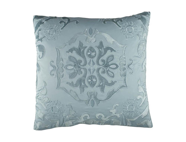 Add a touch of old-world glamour to any space with this Morocco Sea Foam Pillow by Lili Alessandra. The uniquely crafted and luxurious square pillow features a design that is perfect for the classic bed. The decorative pillow is made of Lili Alessandra's Silk and Sensibility fabric and is accentuated with a ornate velvet appliqué.