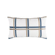 Oliver Smokey Blue & Fawn Large Rectangle Pillow by Lili Alessandra. This large decorative pillow features a simple and chic pattern that is sure to be noticed in any space. Strips of smokey blue velvet and fawn velvet are arranged in a windowpane design on a crisp white linen background.