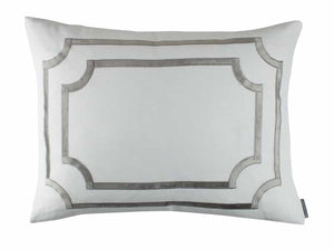 Soho Silver Bedding by Lili Alessandra is simple yet bold with a traditional design that has been modernized. The linen duvet cover and pillows are framed with a simple dark grey double velvet appliqué. The collection is handsome, luxurious and timeless–perfect for a room with classic decor.