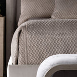 Valentina Buff Quilted Coverlet and Pillows by Lili Alessandra are elegant and luxurious. The bedding is made from soft diamond quilted velvet and come in a neutral color that will easily complement any bedroom.