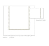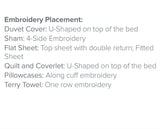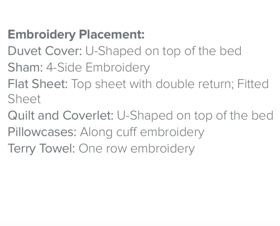 Manarola Embroidered Bedding by Dea Fine Linens showcases a simple and elegant stylized design embroidered on luxurious Raso Sateen. The luxury embroidered bed linens are available in White and Ivory with 9 thread color options.