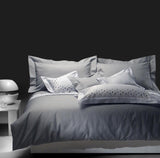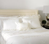 Minerva Bedding by Dea Fine Linens showcases a whimsical yet refined design. Small multi-tonal squares are embroidered on your choice of white or ivory bed linens. Expertly crafted from exquisite Raso Sateen, Minerva promises luxury and supreme comfort.