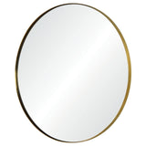 Instantly open up and elevate any space with this Burnished Brass Round Mirror by Mirror Home. The round mirror features a simple classic design with a contemporary feel. This mirror works with any décor style, making it the perfect wall accent for any interior. The round wall mirror is framed in a hand welded stainless steel with a burnished brass finish.