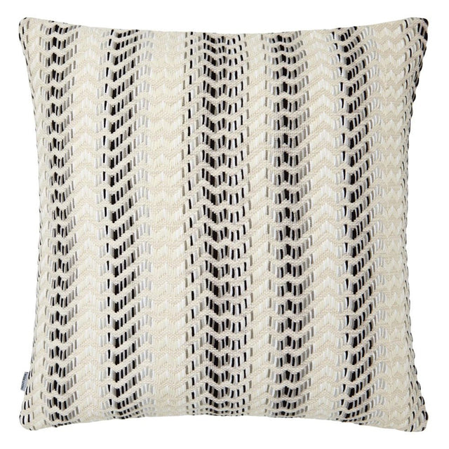 This Ombre Woven Decorative Pillow by Mode Living features an intricate textured design that will delight in any space. The contemporary throw pillow has an chevron pattern woven on top of a multicolored striped background. The accent pillow is woven with neutral colors–it's a great option for adding a touch of texture and pattern to any bed or sofa.