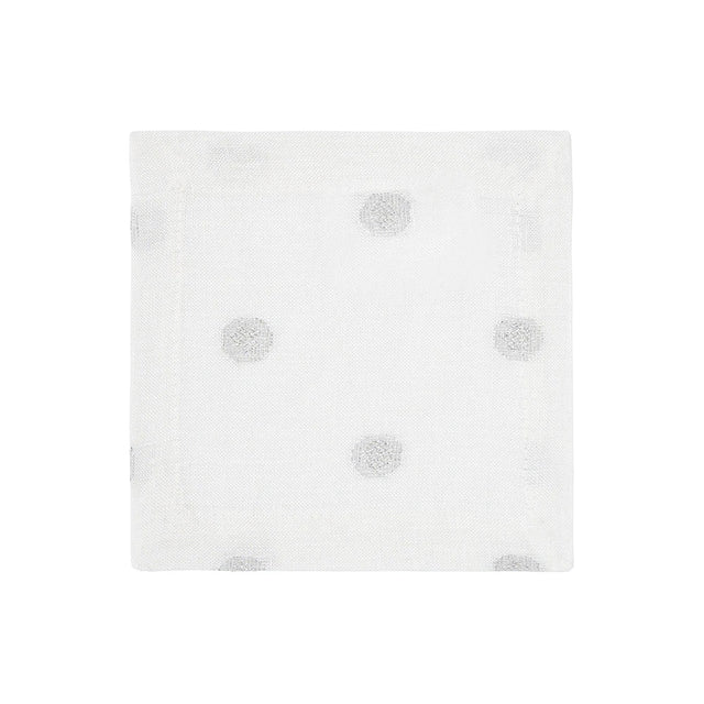 Vogue Silver Cocktail Napkins by Mode Living are playful yet chic. These contemporary cloth napkins feature subtle silver metallic dots woven on white linen. Easily pair them with the coordinating table cloth and matching dinner napkins. Also available in Gold.
