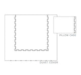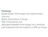 - Duvet Cover: Knife-edge and hidden button closures; U-shaped embroidery