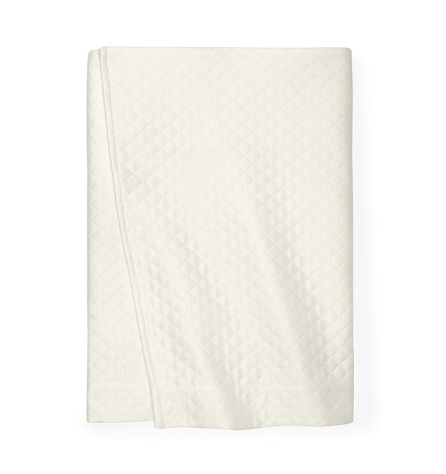 This Bari Ivory Matelassé Bed Skirt by Sferra is luxurious and classic with a refined and tailored look. The bed skirt comes in a neutral ivory and has a diamond piqué pattern. It is soft with a substantial weight and a lustrous sheen.