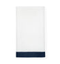 These Filo Linen Guest Towels by Sferra add a fresh and welcoming touch to any powder room or guest bath. The white linen fingertip towels are finished with a contrasting navy hemstitched border which gives them a tailored look. Towels may be draped atop a terrycloth hand towel, folded and stacked in a basket, or left sink-side for convenience. These luxury fingertip towels add the ultimate personalized touch to any guest bath, and are perfect for monogramming.