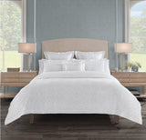 Giza 45 Porta Fine Linens by Sferra. New to the Sferra Giza 45 Collection is this ultra luxe Giza 45 Porta Bedding. These duvet covers, sheets, shams and cases from Sferra Fine Linens offer timeless elegant style for any bedroom. The Giza 45 Cotton sheeting is made of the rarest Egyptian cotton. The Giza 45 fabric is supremely soft, smooth and luxurious. The bedding features an all-over scrolling design inspired by classic ironworks. This long staple Giza cotton bedding comes in two colorways: White and Tin.