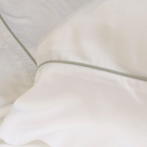 Sleep in luxurious comfort with Sheena Seaglass Bamboo Bedding from Pom Pom at Home. This 100% Bamboo sheet set is breathable and hypoallergenic, with a drape that is incredibly silky-smooth and a 5” flange featuring delicate piping detail. Enjoy the beauty and feel its ultra-soft fabric against your skin for a restful night's sleep.