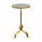 Barclay Round Gold Cigar Table by Worlds Away. This elegant small table is an instant classic that will easily complement an number of interiors for years to come. The petite drinks table features a unique leaf-inspired motif with a hammered iron frame. The metal frame is finished in hand applied gold leaf and supports a round top with an antique mirror inset. This table is perfect for smaller space and intimate nooks.