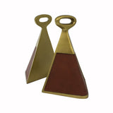 Hooper Antique Brass & Brown Faux Leather Bookends by Worlds Away. This set of bookends add a touch of glam to your etagere or book shelf. The lovely decorative accessories feature a geometric silhouette with vegan cognac leather and antique brass framing. Decorative and practical, the Hooper bookends add a wonderful finishing touch to any luxury interior.