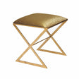 "X" Side Stool or Bench is a Gold Leaf Base with Gold Dot Upholstery. Beautiful for a dressing room, a place to put your feet in the living room or to position at the end of a bed or alongside a chair.
